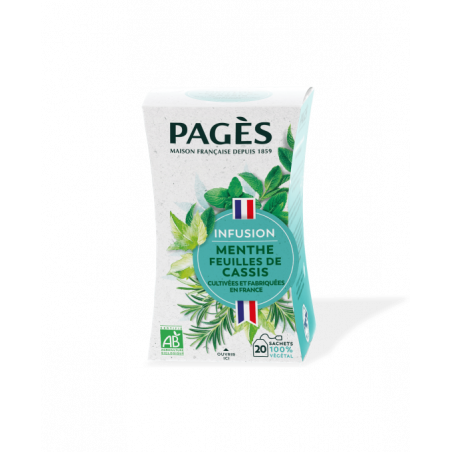 Ingrédients : Feuilles de Cassis bio 55%, Menthe douce bio 30%, Romarin bio 15%