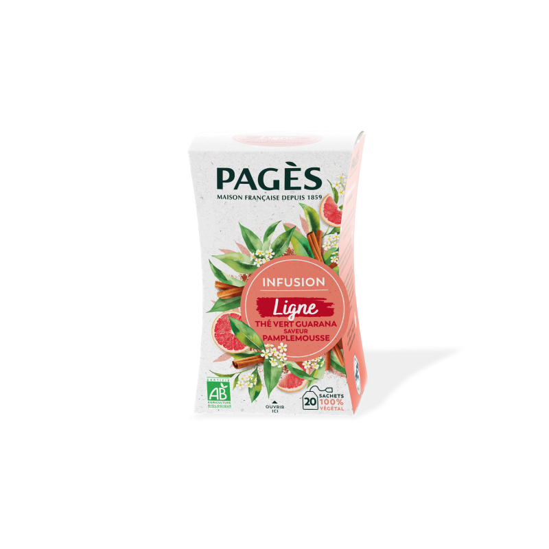 Savoir-faire et créativité sont les maîtres mots de cette recette Ligne Bio de Pagès ! Dans le cadre d’un régime alimentaire équilibré, le Thé vert aide au contrôle du poids. Quelques notes de Cannelle et une touche de Pamplemousse viennent parfaire ce mélange d'infusion irrésistiblement gourmand.