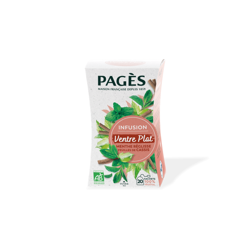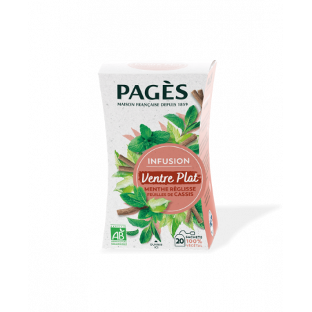 Ingrédients : Menthe douce bio 41%, feuilles de Mauve bio 29%, feuilles de Cassis bio 25%, Réglisse bio 5%.