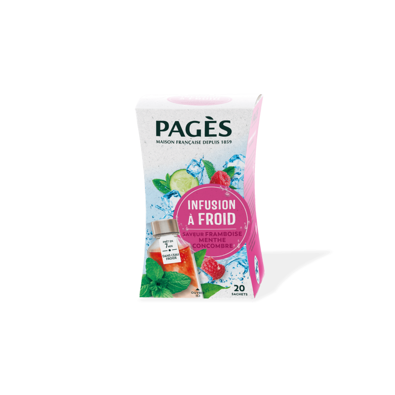 Cette délicieuse infusion allie les saveurs de Framboise, de Menthe et de Concombre pour créer une boisson rafraîchissante.