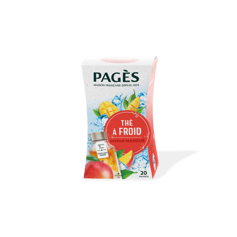 Le thé noir, aux notes intenses, s'associe à la douceur fruitée, de la Mangue dans cette recette de thé froid Pagès. Ce cocktail indéniablement est la boisson parfaite pour passer un été agréablement frais. Un peu de soleil, un moment pour soi, un thé froid... et hop, voilà le combo parfait pour l'été ! Faites vous plaisir avec notre à froid saveur Mangue, prêt en quelques minutes seulement : il vous suffit de faire infuser un sachet de thé froid Pagès dans l'eau froide, pendant 8 minutes... et c'est prêt ! Un thé gourmand, rapide, sans prise de tête aux notes incroyablement estivales. Que demander de plus pour les gourmands ?