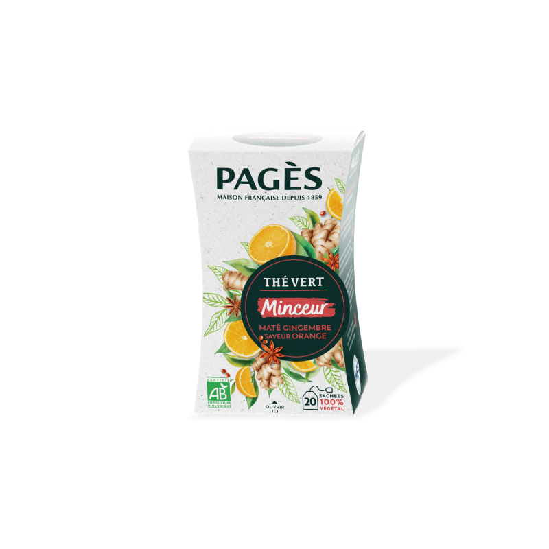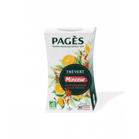 Le Thé vert est réputé pour aider au contrôle du poids. Pagès l’infuse ici avec la Reine des Près, le Gingembre, aux notes relevées, à la Badiane à la saveur de l'Orange, libérant des arômes caractéristiques et intenses. Cette recette de thé créative Bio est le résultat d’un juste équilibre entre plantes, épices et arômes.