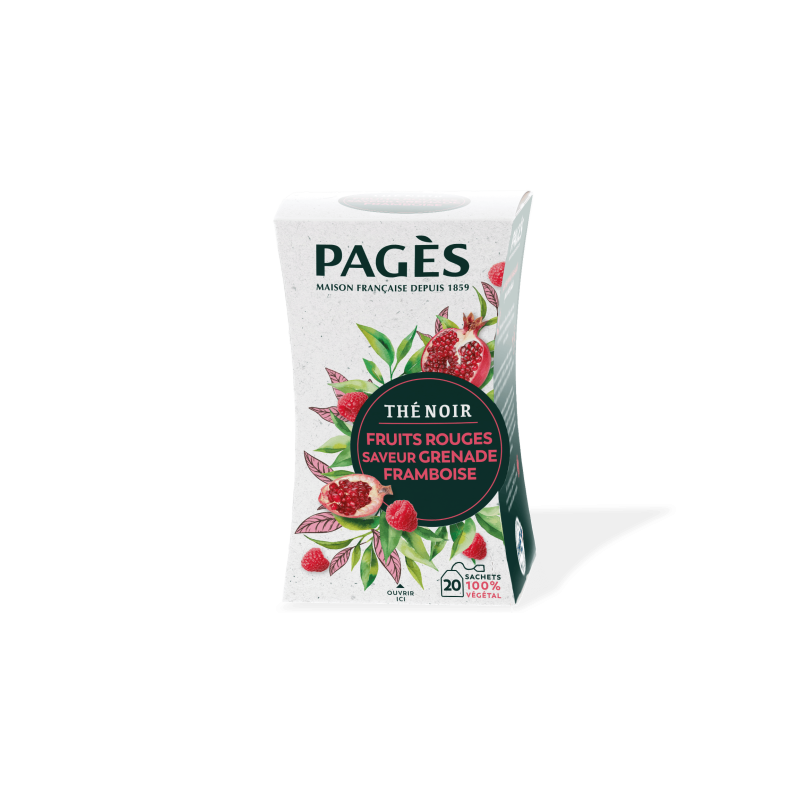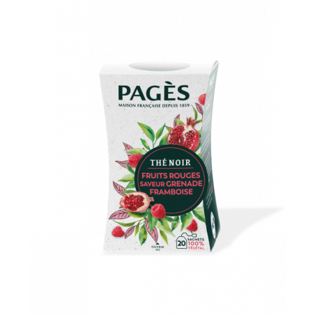 Le thé noir Fruits rouges saveur Grenade Framboise de Pagès est un thé de haute qualité issu de jardins exceptionnels. Il allie la volupté du thé noir aux notes fruitées de Grenade et de Framboise. Son infusion dévoile une liqueur de couleur cuivrée, et délivre ses effluves parfumés pour une dégustation fruitée et originale.