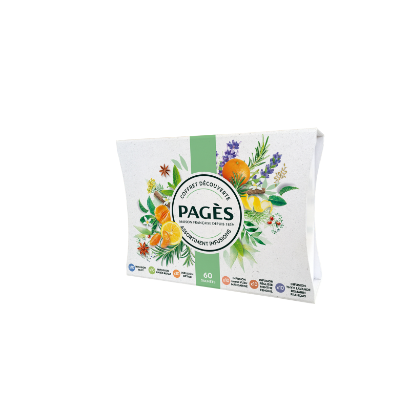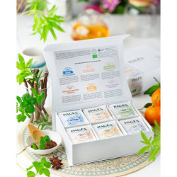 Découvrez une sélection de six produits de la gamme d’infusions bio PAGÈS en sachets réunies dans un coffret :
