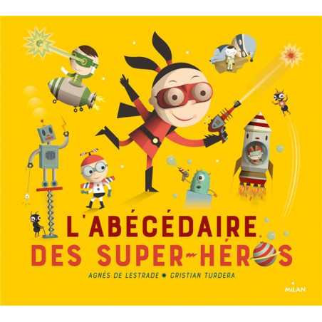 F comme fusée. Quand Super-Distrait est en retard pour l'école, hop ! il grimpe dans sa fusée et il décolle. Il atterrit le premier... Ses copains, eux, arrivent à pied ! De A comme anniversaire à Z comme zozoter en passant par R comme récré : un abécédaire aux super-pouvoirs pour tout savoir sur le quotidien des super-héros.