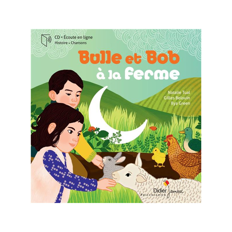Bulle et Bob sont à la ferme chez Tontonpic et Tatacrêp'. Les poules, les lapins, les vaches, le tracteur, le potager, les champs autour L'occasion pour eux de vivre au rythme de la ferme et de regarder la vie pousser lentement ! Des rythmes endiablés et une pointe de tendresse... On retrouve dans ce livre-disque toute la saveur des chansons de Bulle et Bob, la voix pétillante de Natalie Tual, et les formidables arrangements de Gilles Belouin, toujours aussi créatif, qui invente les percussions sur notes de terre et d'herbe.